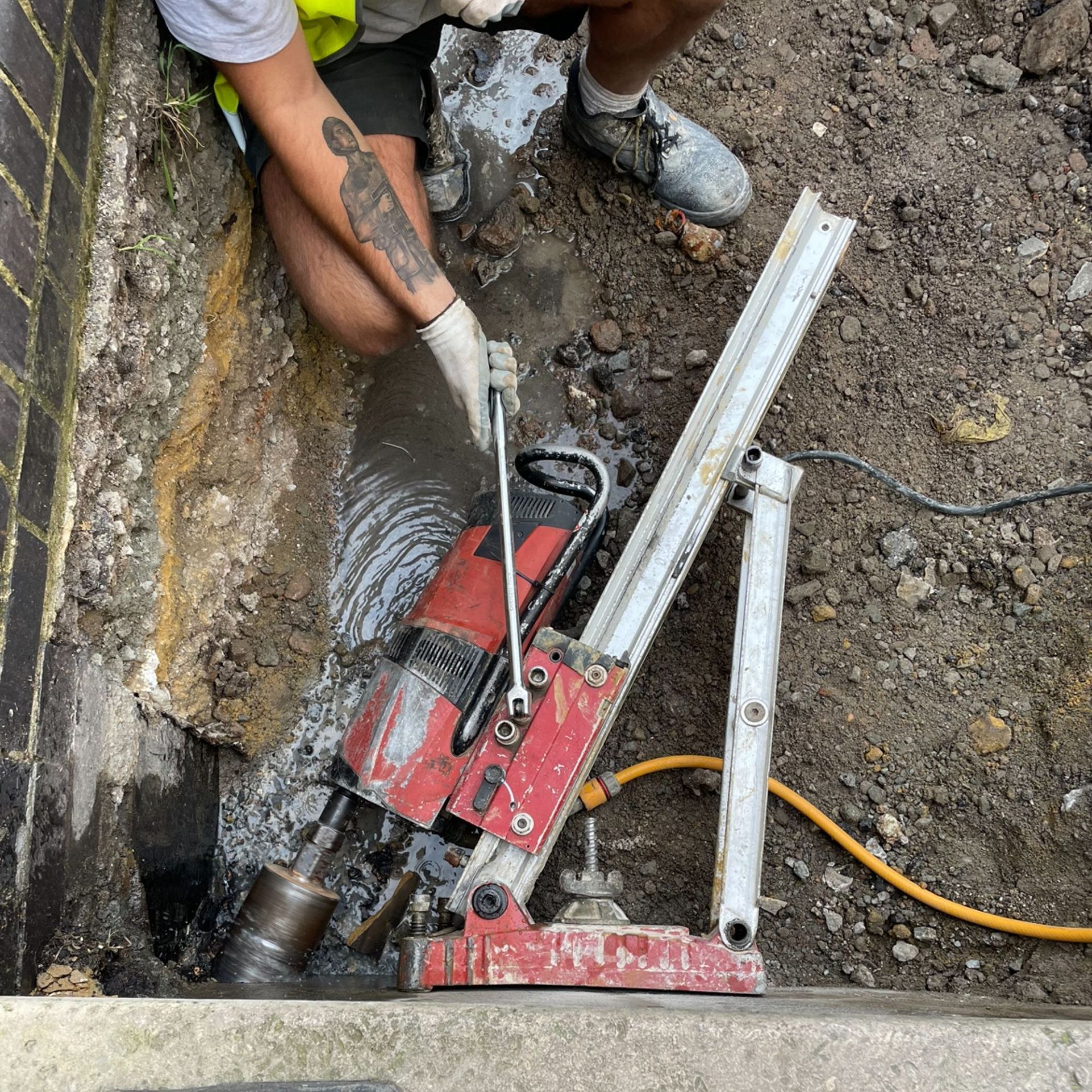 Firstly, we used a pre-cut saw with a maximum cutting depth of 150mm, and then followed down using a ring saw with a maximum cutting depth of 270mm. Water was used to eradicate the dust emissions produced and also to cool the diamond blade during the cutting process.