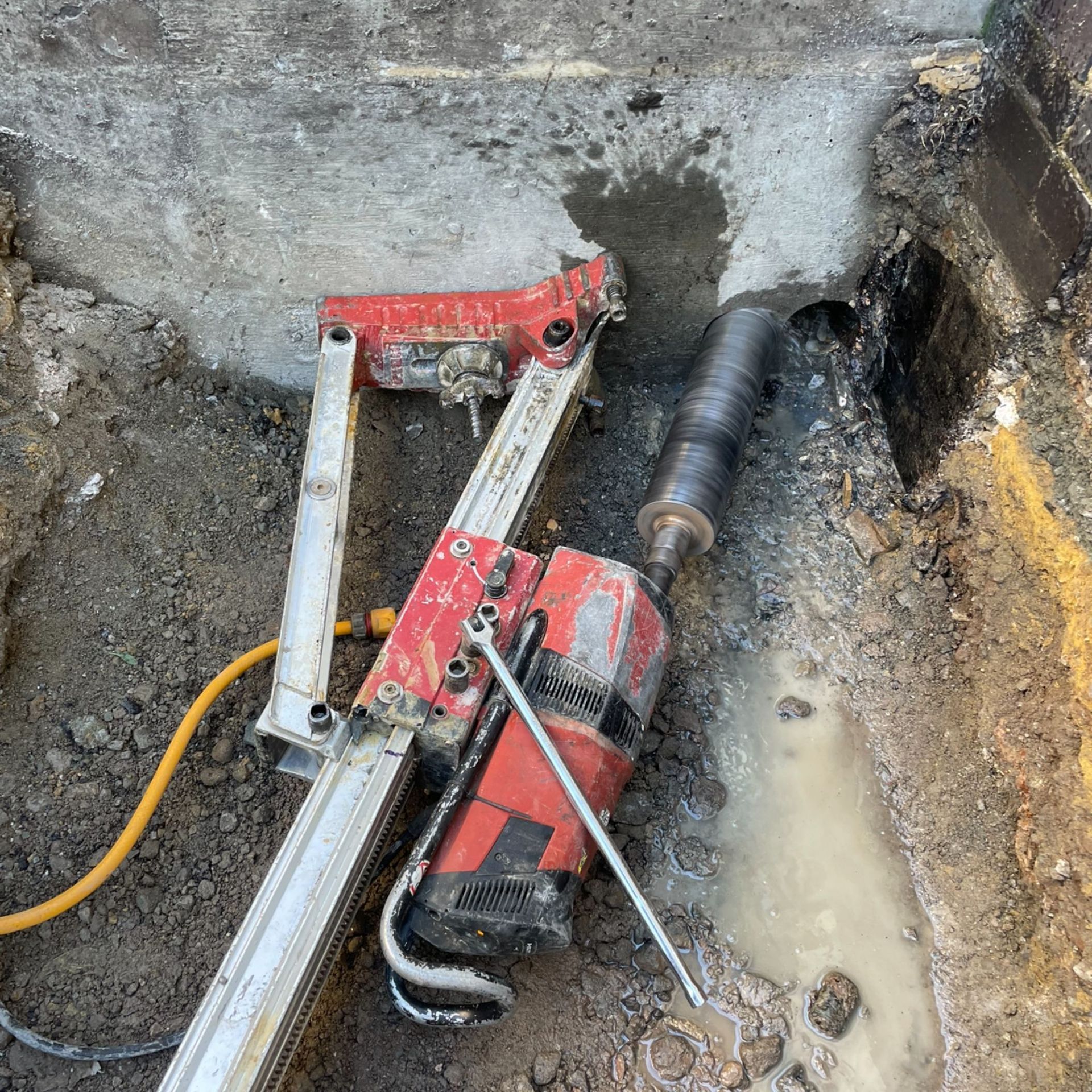 All drilling should be performed following approved RAMS (Risk Assessment & Method Statements) and in coordination with site managers and M&E teams. This ensures that live services are isolated or protected before work begins.